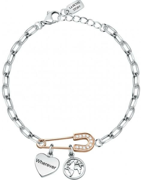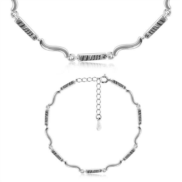 A karkötő 925 ezüstből készült. Téglalap alakú, bevágásokkal ellátott láncszemekkel, amelyek fényes, sima hullámokkal váltakoznak, és keskeny körökkel vannak összekötve. A karkötő állítható hosszúsággal és rugós gyűrűzárral rendelkezik. A karkötő hossza: 155 mm A karkötő szélessége: 2,2 mm Hosszabbító lánc hossza: 30 mm Teljes karkötő hossza: 185 mm (+/-