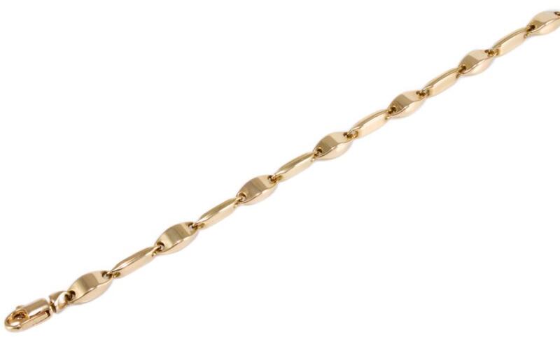 Modern stílusú, kedvelt fazonú, üreges kialakítású, mutatós arany karkötő.