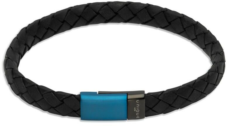 Rozsdamentes acél és bőr karkötő. Fekete szín. Fekete és kék színű PVD bevonatú mágneses zár. Új 2021-es modell! Cikkszám : B495BLUE Szín : Fekete Karkötő anyaga : Rozsdamentes acél és bőr Méretválaszték : 21 cm Nikkelmentes : Igen Vízállóság : nem vízálló Garancia : A termékre egy év garancia érvényes!