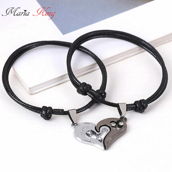 I love you feliratos páros medál fekete műbőr karkötőn, két darab. Külön is szép karkötők, de együtt adják az örök üzenetet. A karkötők hossza: 16+9 cm, állítható. Anyaga műbőr és fémötvözet. Az első szívforma, stilizáltan, füge illetve borostyánlevél formájában, kr. e. 3 évezredből származik, Afganisztánból. Ezeknek a formáknak valószínűleg nem volt k