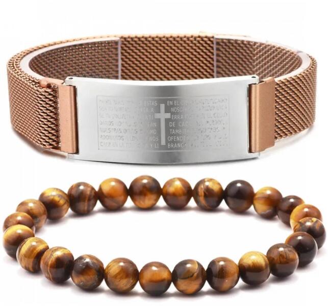 Hluben karkötők Ez a karkötőszett ötvözi az eleganciát és a szellemi értékeket egy stílusos csomagban. Tökéletes ajándék valakinek, aki értékeli a divat és a szimbolikus jelentés kombinációját. Az első karkötő, amely tartós acélból készült, gravírozott szöveget és kereszt szimbólumot tartalmaz, amely mély jelentést és kifinomult megjelenést kölcsönöz. Minde