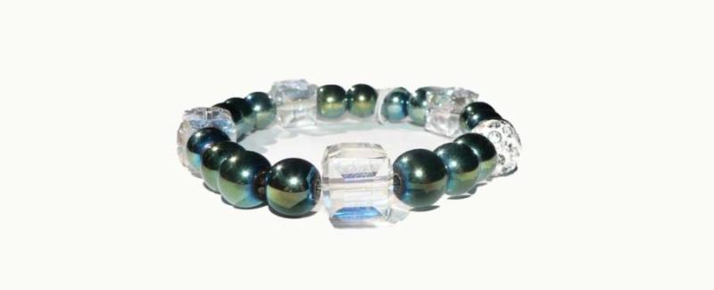 Az ásvány golyók gumira vannak felfűzve. Az ásványok színbeli aránya eltérhet a képen láthatótól. Amit az achátról érdemes tudnod: Az achát minden színben fellelhető, többnyire szürke, kékesszürke, zöldesszürke, szürkésfehér, barna csíkozással, áttetsző. Lelki gyógyhatás: Az achát lelki gyógyhatásai közül a legkiemelkedőbb a segítségnyújtása félelmeink