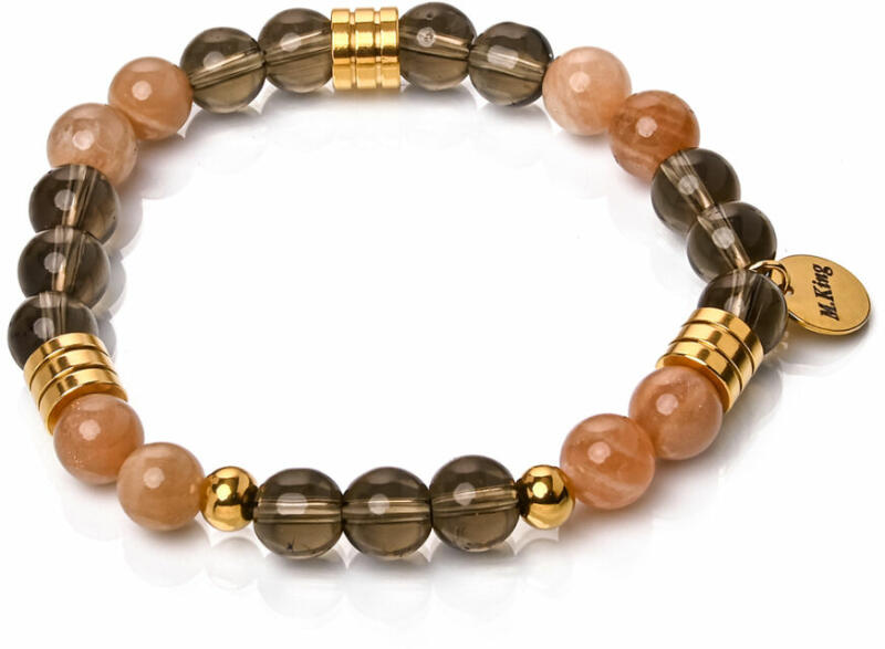 Vagány, mégis kifinomult füstkvarc és napkő ásvány karkötő férfiaknak és nőknek is, hiszen a dizájn férfias, mégsem otromba, színe föld szín, mégis sejtelmesen csillog. A Maria King kollekció kiemelt darabja. Figyelem! A képen exkluzív kivitelű, rugalmas karkötő látható kapocs nélkül, de kérheted extra erős acélsodronyra is delfinkapoccsal és 5 cm hosszabbítólán