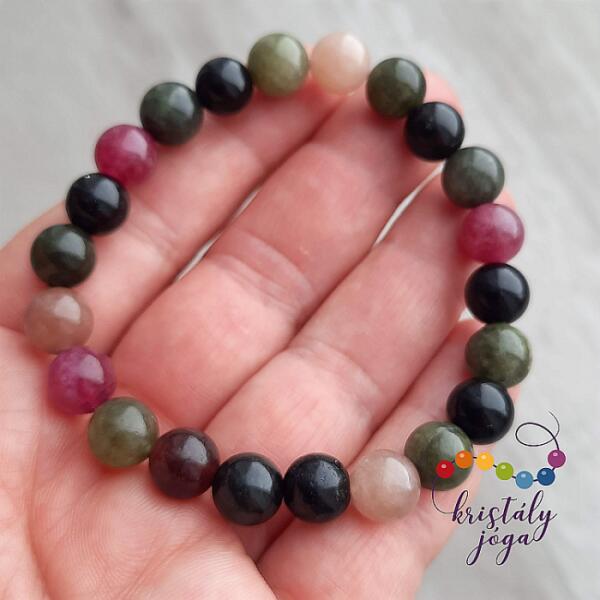 A színes turmalin e gyensúlyba hozza a jobb és a bal agyféltekét, a gondolatokat pozitív irányba tereli. Segítségül hívhatjuk diszlexiánál, mert segíti a szem-kéz koordinációt, és az információk megértését. Egyensúlyba hozza a jint és a jangot. Azt mondják róla, hogy az öregedés folyamatát is lassítja, élénken és mozgékonyan tart. Csökkenti az ízületi gyullad
