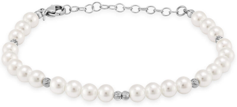 Kedvelt fazonú, fényes betétekkel kombinált, ródiummal bevont, könnyített kialakítású 3+1 szemkötésű arany karkötő.