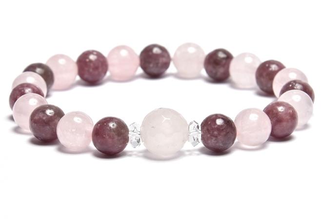 A karkötő 10 mm-es fazettált és 8 mm-es rózsakvarc gömböt, 5x3-as fazettált hegyikristály korongot és 8 mm-es AA minőségű lepidolit ásvány gömböt tartalmaz, gumira fűzve. A karkötő méretének meghatározása : a csuklód pontos méretéhez adj hozzá kb. 1,5 cm-t. KÉRLEK VÁLASSZ MÉRETET ! Az ásványok nem helyettesítik az orvosi diagnózist és kezelést. A lepidolit hat