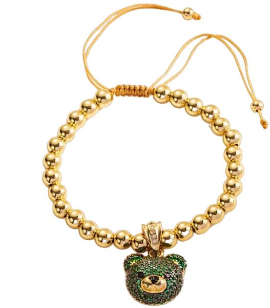 Bear Karkötő Különleges, divatos Bear karkötő verhetetlen áron. Az ékszer nem tartalmaz nikkelt, ezért érzékeny bőrű emberek is viselhetik. Tulajdonságok: A karkötő mérete: Húzással állítható A mackófej medál mérete: 2cm x 1,8cm A gyöngyök átmérője: 0,5cm Anyaga: Gyöngyöcskék, Fém ötvözet, Cirkónia ékkövek Szín: Arany/Zöld