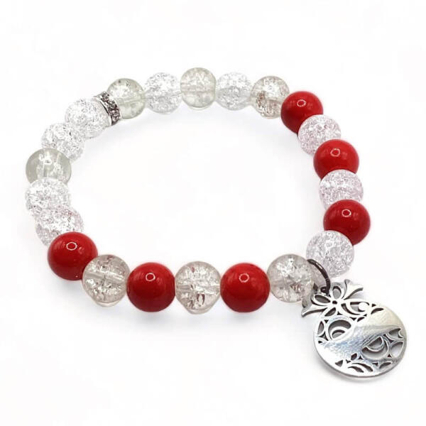 Kedves ajándék Karácsonyra ez a gumis damilra fűzött jáspis és roppantott hegyikristály ásványból készült karkötő, nemesacél medállal. Fémallergiások is bátran hordhatják. Ajánljuk mindenkinek, aki örömet szeretne okozni ezen a meghitt ünnepen családtagjának, barátnőjének, vagy saját magának. A karácsony a kereszténység második legnagyobb ünnepe, teológiailag