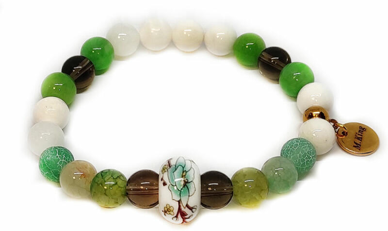 Figyelem! A képen exkluzív kivitelű, rugalmas karkötő látható kapocs nélkül, de kérheted extra erős acélsodronyra is delfinkapoccsal és 5 cm hosszabbítólánccal. Ha a kapcsos verziót kéred, ami nem szakad, nem nyúlik, válaszd ki a listából, vagy írd be a Megjegyzésbe, és a csuklód körbemért méretét is add meg. A féldrágakő ásvány ékszer tartozékai: – 8 mm-es f