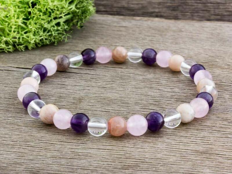 Az ásvány golyók gumira vannak felfűzve. A karkötőt ametiszt, rózsakvarc, holdkő és hegyikristály ásványgolyók alkotják. Nikkelmentes ékszer. Egyedi tervezés alapján készült kézműves ékszer. Amennyiben egyéni kérésed van, vagy nem találod, amit szeretnél, keress engem bátran. Figyelem! Az ásványokat, kristályokat az őskor óta használják a test, a lélek és az é
