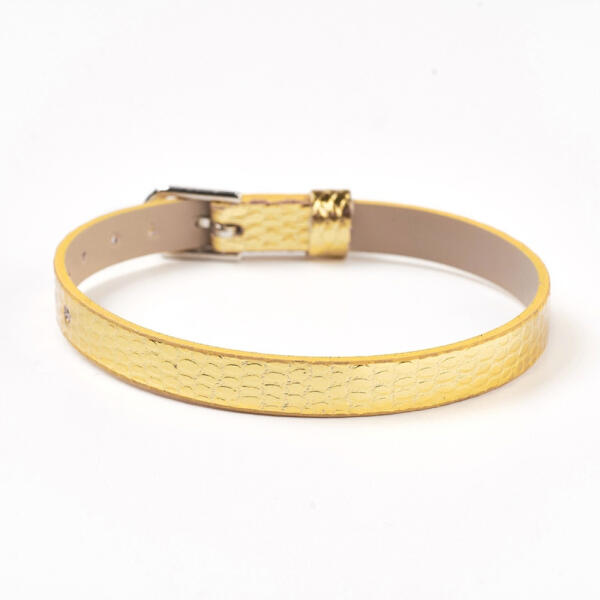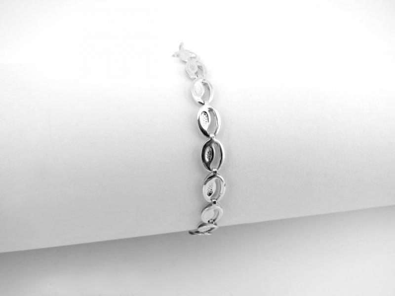 Karkötő 14K sárga aranyból, fényes, lapos lemezzel, amely ovális szemek mintájából áll, melyek középen vékony pálcikával vannak elválasztva. Kerek kapoccsal rendelkezik . A karkötő szélessége: 2,4 mmA karkötő hossza: 180 mm (+/- 5%)A lemez méretei: 21 x 4,6 mmA zárószem szélessége: 2,1 mmA karkötő súlya: 1,73 gFémjelzéssel ellátott.