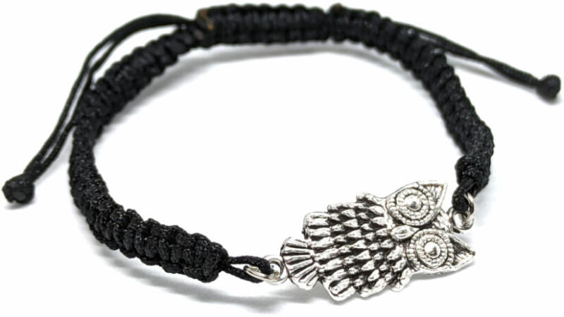 Karkötő mérete állítható, mindenkire jó. Bagoly karkötő. Paraméterek: Charm mérete 2,8x1,3 cm, anyaga fémötvözet, színe ezüst. A karkötő szövet, mérete állítható.