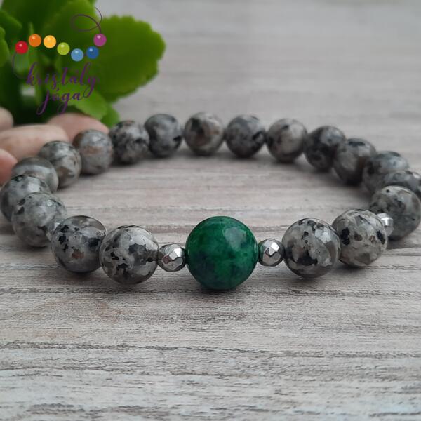 Ónix, hematit és roppantott hegyikristály ásványokból fűzött gumis karkötő. Amit az ónixról érdemes tudnod: Az ónix általában fekete, néha előfordulhat fehér, szürkés csíkozódással is. Lelki gyógyhatása: Az ónix egy védelmező kő, amely a negatív energiák ellen véd. Csökkenti a befolyásolhatóságunkat, növelve így az önbizalmunkat, egészséges egónkat. Egyen