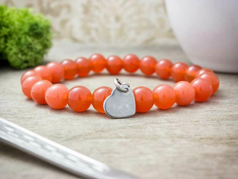 Ez a karkötő a Te kérésedtől lesz személyes! Ezt az egyedi ásvány karkötős ajándékötlet ünket 8 mm-es karneol ásványgyöngyök alkotják, valamint egy szív alakú 10×11 mm-es méretű szolidan elegáns acél medál is díszíti, ami mindkét oldalán gravírozható. Rákerülhet gyermeked neve , vagy akár a nagymama részére az unokáé. Kérhetsz rá például monogramot, dát