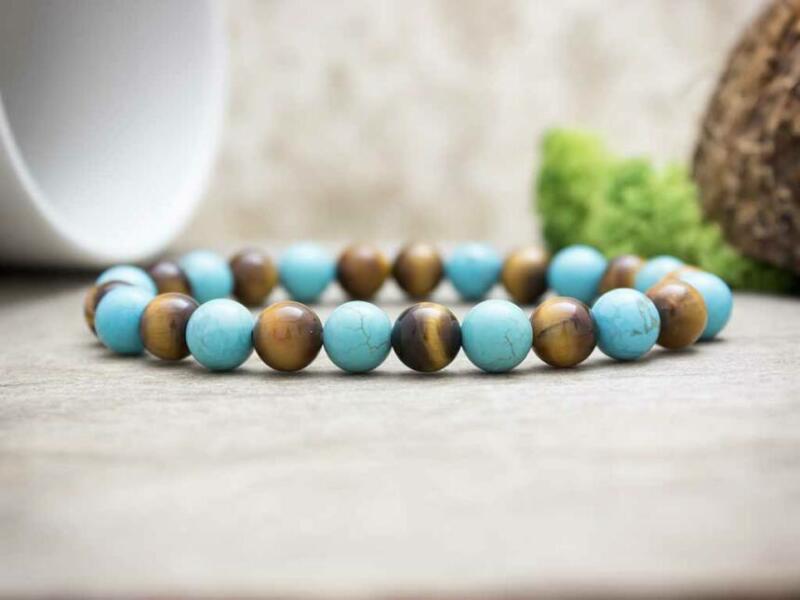 Rekonstruált türkiz és tigrisszem ásványokból fűzött gumis karkötő. Nikkelmentes ékszer. Egyedi tervezés alapján készült kézműves ékszer. Amennyiben egyéni kérésed van, vagy nem találod, amit szeretnél, keress engem bátran. Figyelem! Az ásványokat, kristályokat az őskor óta használják a test, a lélek és az érzelmek harmonizálására. Az ókori kultúrákban kifej