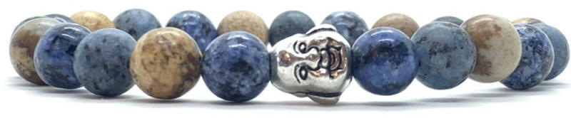 Egyedi ásvány karkötő Buddha fej köztes dísszel A 8mm-es Jáde és Crazy kék Achátok ásvány golyók gumis damilra vannak felfűzve, buddha fej díszítéssel. Amit az achátokról tudni kell: Az achát rengeteg színben fellelhető, többnyire szürke, kékesszürke, zöldesszürke, szürkésfehér, barna csíkos, áttetsző. Az achátok testi és lelki hatásai: Tisztítja az aurát. Me