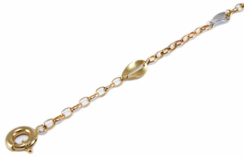 Modern stílusú, kedvelt fazonú, állítható nagyságú, ródiummal bevont, hullámos ovális betéttel díszítettel arany karkötő.
