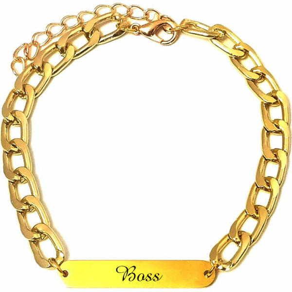 Paraméterek: – A vékonyabb karlánc: A szemek 4x3 mm-esek, vékony, elegáns, diszkrét (de azért nem a legvékonyabb karlánc). A karlánc anyaga rozsdamentes acél! A felirat lapocska kb. 30x6 mm-es, rozsdamentes tüköracél. – Vastagabb karlánc: A szemek kb. 9x7 mm-esek, nem nagyon vastag, nem is vékony. A karlánc anyaga rozsdamentes alumínium. A felirat lapocska kb. 30x6 mm-es, roz