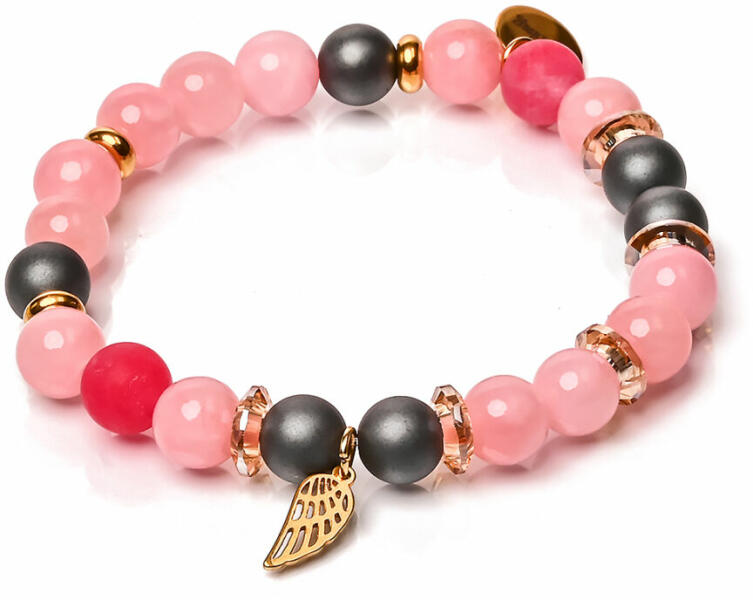 Figyelem! A képen exkluzív kivitelű, rugalmas karkötő látható kapocs nélkül, de kérheted extra erős acélsodronyra is delfinkapoccsal és 5 cm hosszabbítólánccal. Ha a kapcsos verziót kéred, ami nem szakad, nem nyúlik, válaszd ki a listából, vagy írd be a Megjegyzésbe, és a csuklód körbemért méretét is add meg. A karkötőt alapesetben a képen is látható charmmal kü