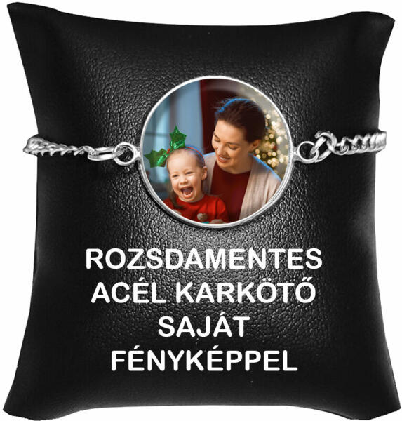 Fényképes karkötő rozsdamentes acélból, márkadobozzal. A karkötőt Logóbilétával és márkadobozzal szállítjuk! (A márkadoboz készlethiánya esetén logó nélküli dobozzal szállítjuk. ) Ez a fényképes karkötő típus csak nálunk kapható. Anyaga rozsdamentes acél. Mérete 17 cm + 5 cm hosszabbítólánc. A karkötőn a szemek mérete kb. 3-4 mm-esek. Ha nagyobb méretet