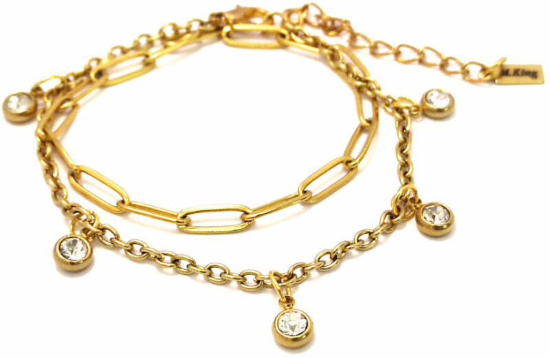 Színtel en kristályos charmos dupla karkötő, 5 charmmal. Paramé terek: Charm mérete 0,6 cm. Anyaga nemesacél, karkötő anyaga rozsdamentes acél. Karkötő mérete 17+5 cm. (Ha ettől eltérő méretet szeretnél, rendeléskor a MEGJEGYZÉSBE írd be. ) Szélesség 4 és 3 mm. Csajos, divatos, mégis vagány karkötő, nem túl sok, nem túl kevés, feltűnő, de nem hivalkodó.