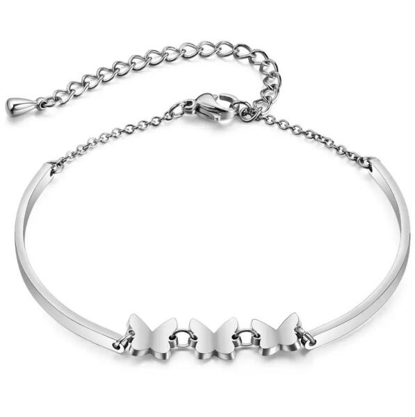 Lovely Butterfly Karkötő Csodaszép Lovely Butterfly karkötő szuper áron. A karkötő kialakításának köszönhetően akár hétköznapokon, akár különleges eseményeken is viselhető. Nem tartalmaz sem nikkelt, sem ólmot, sem kadmiumot. Tulajdonságok: A karkötő hossza: 16cm + 4,5cm Szín: Ezüst Anyaga: Nemesacél