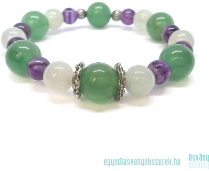 Figyelem! A képen exkluzív kivitelű, rugalmas karkötő látható kapocs nélkül, de kérheted extra erős acélsodronyra is delfinkapoccsal és 5 cm hosszabbítólánccal. Ha a kapcsos verziót kéred, ami nem szakad, nem nyúlik, válaszd ki a listából, vagy írd be a Megjegyzésbe, és a csuklód körbemért méretét is add meg. A féldrágakő ásvány ékszer tartozékai: – 8 mm-es f