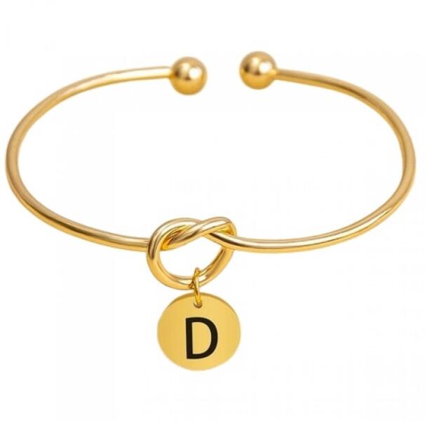 Alphabet Karkötő-D Elegáns Alphabet karkötő betű medállal verhetetlen áron. A karkötőt minden nap, akár hétköznapokon viselheti. Nem tartalmaz sem nikkelt, sem ólmot, sem kadmiumot. Tulajdonságok: A karkötő átmérője: 7cm (óvatosan széthúzható, hogy a csuklóra lehessen tenni) Betű: D Anyaga: Nemesacél Szín: Arany