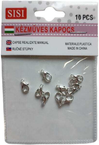 Az ezüst színű delfin kapocs kényelmes és stílusos megoldás karkötőidhez. A csomagban 15 db 11,5x6 mm-es kapocs található. Delfin kapocs 15 db 11,5x6 mm ezüst A csomag 15 db ezüst színű delfin kapcsot tartalmaz, amelyek mérete 11,5x6 mm. Ezek a delfin kapcsok kiváló minőségűek és könnyen használhatóak. Az ezüstszín elegáns és stílusos megjelenést kölcsönöz a kark