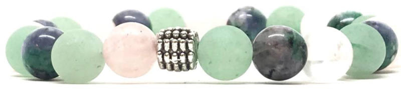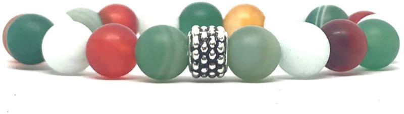 Egyedi ásvány karkötő A 8mm-es Aventurin, Rózsakvarc és Crazy zöld Achátok ásvány golyók gumis damilra vannak felfűzve, fém köztes díszítéssel. Amit az achátokról tudni kell: Az achát rengeteg színben fellelhető, többnyire szürke, kékesszürke, zöldesszürke, szürkésfehér, barna csíkos, áttetsző. Az achátok testi és lelki hatásai: Tisztítja az aurát. Megnyugtat