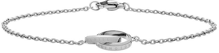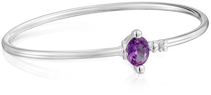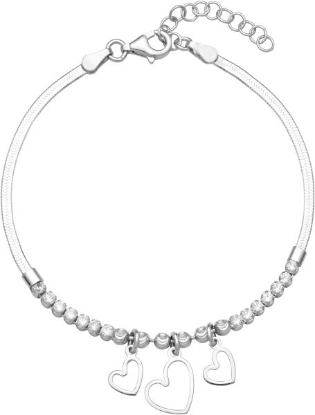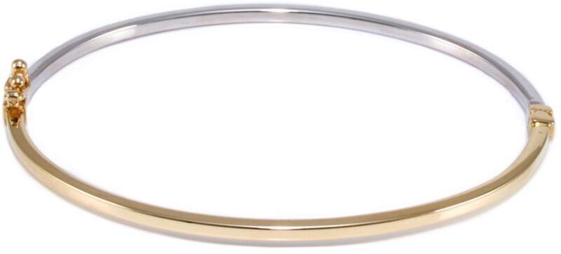 Modern stílusú, egyszerűen elegáns, vékony, egyik felén ródiummal díszített, praktikusan nyitható, könnyített kialakítású arany karkötő.