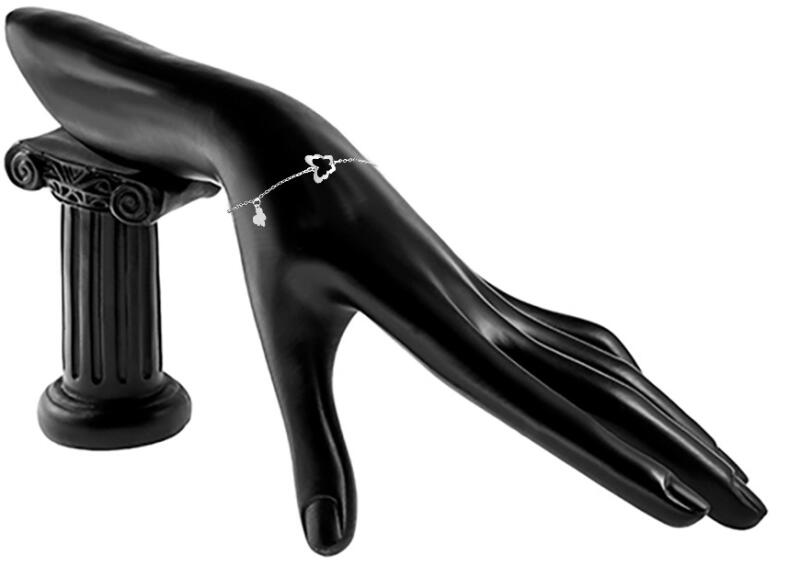 A 9K fehér aranyból készült karkötő, egy fényes láncból áll, merőlegesen egymáshoz kapcsolódó ovális láncszemekkel, melyen két szimmetrikus, lapos és sima pillangó van rögzítve. Az egyik pillangó körvonal formájú, belül kivágással, a második pillangó ezzel szemben teljes, és a mérete illeszkedik az első pillangó kivágásába. A kisebb pillangó egy gyűrűvel van