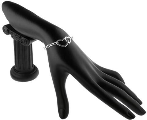 A karkötő sterling ezüstből készült. A hosszúkás láncszemekből álló láncot középen két eltérő nagyságú szívkeret díszíti. A nagyobb szívecskébe "Sisters" felirat van gravírozva. Delfinkapoccsal záródik. A szívek mérete: 25 x 14 mmA karkötő hossza: 185 mmA karkötő súlya: 5,3 gFémjelzéssel ellátott.