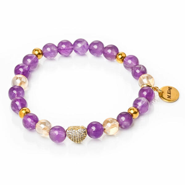 Gyönyörű ametiszt és angyal aura karkötő, különleges lila és arany kombinációja, megkoronázva egy remekül kidolgozott cirkóniummal kirakott szív dísszel. Az arany színű nemesacél gyöngyöktől még varázslatosabb az összhatás. Vagány, mégis finoman nőies ékszer. Ha szív dísz nélkül kéred a karkötőt, írd be megjegyzésbe! Figyelem! A képen exkluzív kivitelű, ru