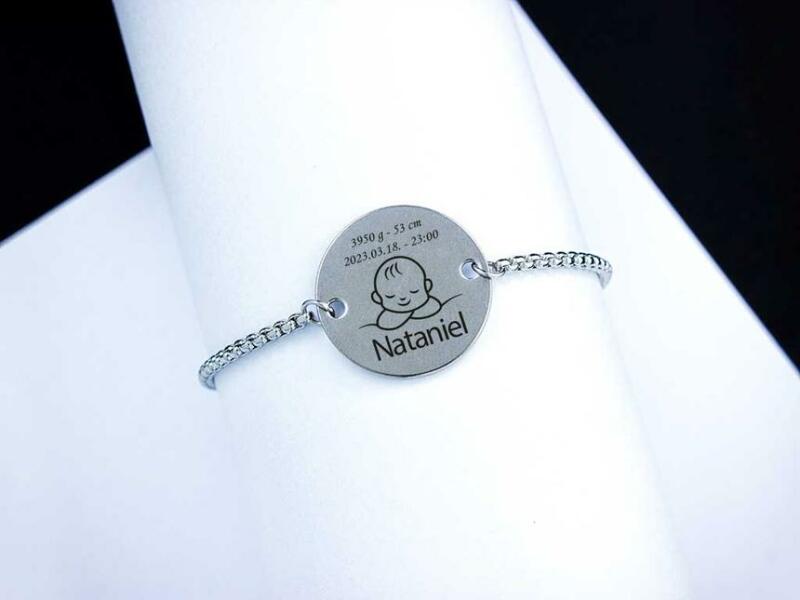Emlékőrző ékszerben a Te varázslatod! A kerek medálra fiú gyermeked keresztnevét , születési dátumát, születési súlyát, születési hosszát és születési idejét gravírozzuk! (Lézer gravírozott kör alakú nemesacél medál - 20×20 mm méretű) Emlékőrző kollekciónk azért kelt életre, hogy az emberi lét legnagyobb csodájának az élet születésének fontos adatait m