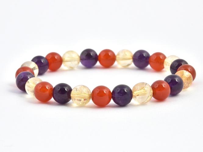 Az ametiszt, a karneol és a citin 8 mm-es ásvány gömbjeiből készített, gumira fűzött karkötő. A karkötő méretének meghatározása : a csuklód pontos méretéhez adj hozzá kb. 1,5 cm-t. KÉRLEK VÁLASSZ MÉRETET ! Az ásványok nem helyettesítik az orvosi diagnózist és kezelést. Az ametiszt hatása : az ametiszt az ókori egyiptomiak szerint megvéd azoktól a félelmektől, am