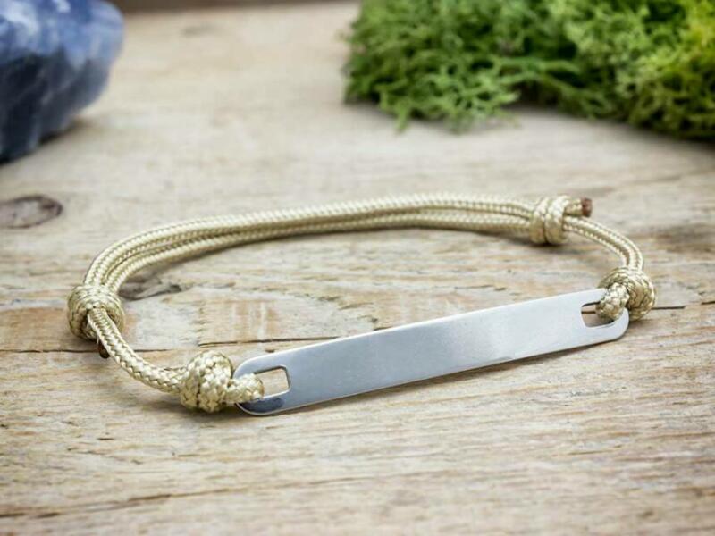 Ezt az egyszerű, de mégis egyedi karkötő ajándék ötlet ünket e gy microcord zsinór és egy acél medál alk ot ja . A karkötőt egy lap alakú 49×6,3 mm-es méretű elegáns acél medál díszíti, amit gravírozunk , így személyesebbé téve az ajándékot . Egyedileg gravírozott ékszer esetén h ogyan zajli k a rendelés? Nagyon egyszerű! A kiválasztott termék adatlapján tudod