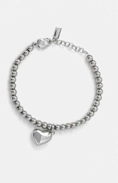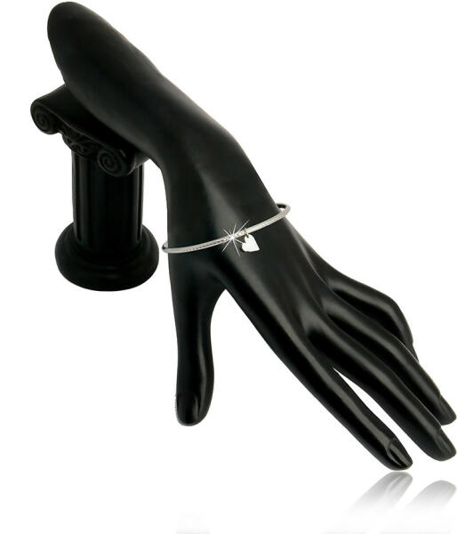 A 925 ezüst karperecet egy lapos szív alakú függő medál díszíti, amelynek a felülete tükörfényes és sima. A karperec egy vékony szilárd karikából áll, amelyet apró kiemelkedő oválisok díszítenek. A kézfejen áthúzva vehető fel. A szív mérete: 9 x 9 mmA karperec szélessége: 2,8 mmBelső átmérő: 65 mmA karperec súlya: 9 gFémjelzéssel ellátva.
