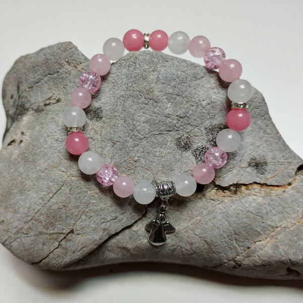 8 mm-es rózsakvarc, ametiszt és jáde ásvány golyókból fűzött gumis karkötő. Az ékszer dísze több kristályokkal kirakott gyűrű. Amit a rózsakvarcról érdemes tudnod: A festetlen rózsakvarc az egész világos, szinte áttetszőtől, a ködös középrózsaszínig terjed. Az egyik legnépszerűbb kövek egyike, amely szépséges küllemének és erős gyógyhatásának köszönhet