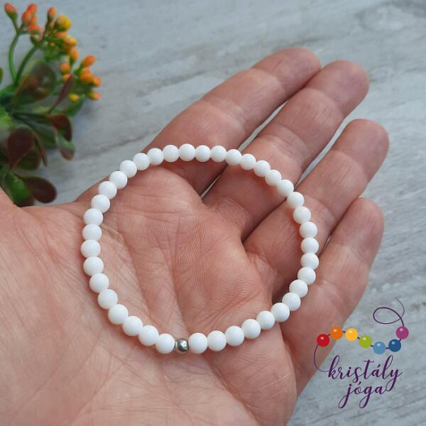 8 mm-es fekete achát és tejkvarc ásvány gyöngyökből fűzött gumis karkötő. Az ékszert egy oltalmazó szem gyöngy is díszíti. Amit az achátról érdemes tudnod: Az achát minden színben fellelhető, többnyire szürke, kékesszürke, zöldesszürke, szürkésfehér, barna csíkozással, áttetsző. Lelki gyógyhatás: Az achát lelki gyógyhatásai közül a legkiemelkedőbb a segí