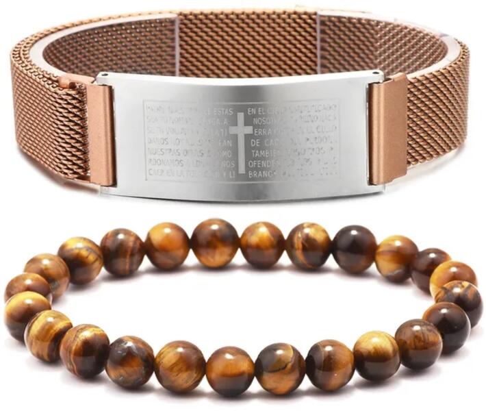 Hluben karkötők Ez a karkötőszett ötvözi az eleganciát és a szellemi értékeket egy stílusos csomagban. Tökéletes ajándék valakinek, aki értékeli a divat és a szimbolikus jelentés kombinációját. Az első karkötő, amely tartós acélból készült, gravírozott szöveget és kereszt szimbólumot tartalmaz, amely mély jelentést és kifinomult megjelenést kölcsönöz. Minde