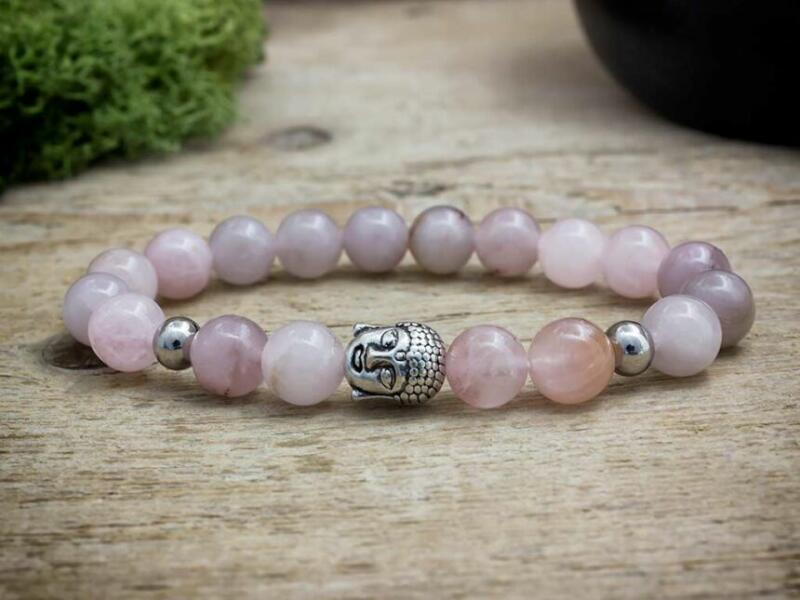 8 mm-es rózsakvarc ásvány gyöngyökből, gumira fűzött ásvány karkötő. Az ékszert egy Buddha medál díszíti. Amit a rózsakvarcról érdemes tudnod: A festetlen rózsakvarc az egész világos, szinte áttetszőtől, a ködös középrózsaszínig terjed. Az egyik legnépszerűbb kövek egyike, amely szépséges küllemének és erős gyógyhatásának köszönhető. Története a gör