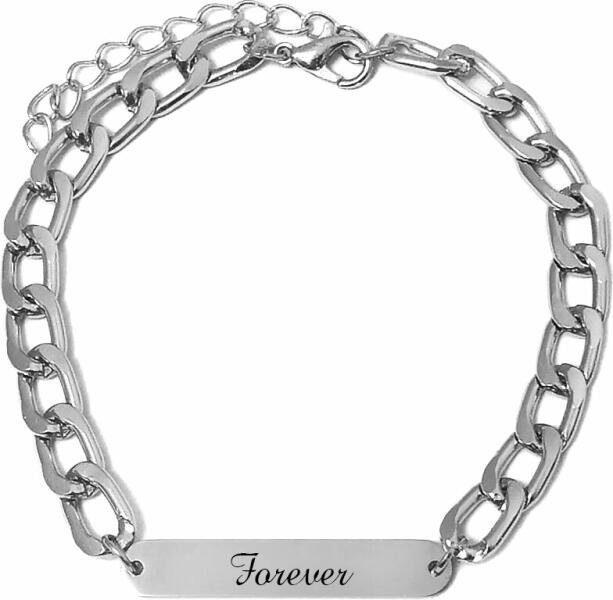 Paraméterek: – A vékonyabb karlánc: A szemek 4x3 mm-esek, vékony, elegáns, diszkrét (de azért nem a legvékonyabb karlánc). A karlánc anyaga rozsdamentes acél! A felirat lapocska kb. 30x6 mm-es, rozsdamentes tüköracél. – Vastagabb karlánc: A szemek kb. 9x7 mm-esek, nem nagyon vastag, nem is vékony. A karlánc anyaga rozsdamentes alumínium. A felirat lapocska kb. 30x6 mm-es, roz