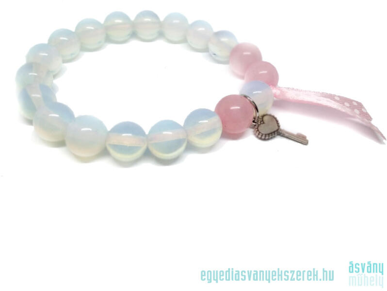 A 6 mm-es rózsakvarc, jáde és roppantott hegyikristály gyöngyök gumira vannak felfűzve. Amit a jádéről érdemes tudnod: A Jáde egy gyűjtőcsoportja a kövek egy fajtájának. A zöld kínai jáde az egyik legnépszerűbb és leggyakoribb a csoporton belül, amelyik hazájában Kínában nemzeti kőnek számít. Lelki gyógyhatás: A zöld szín általános nyugtató hatással bír. Iga