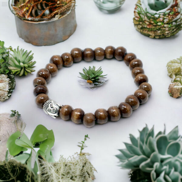 A Barna Fa Gyöngy Buddha Karkötő egy stílusos és egyedi ékszer, ami tökéletesen kiegészíti a bohém, természetközeli vagy spirituális jellegű szettjeidet. A karkötő gyönyörű barna színű fa gyöngyökkel van díszítve, amelyek kellemes és meleg megjelenést kölcsönöznek a viseletednek. A legfigyelemreméltóbb eleme ennek a karkötőnek a központban elhelyezkedő Buddha m