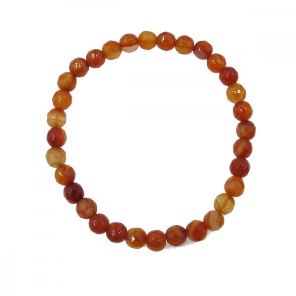 Nagyon szép mintázatú, fazettált csiszolású karneol ásványkövekből készült gumis karkötő. A karkötőt méretre készítem, a rendeléskor a csukló pontos kerületét kell megadni. A karkötő ára a mérettel változik. Karneol gyógyhatása