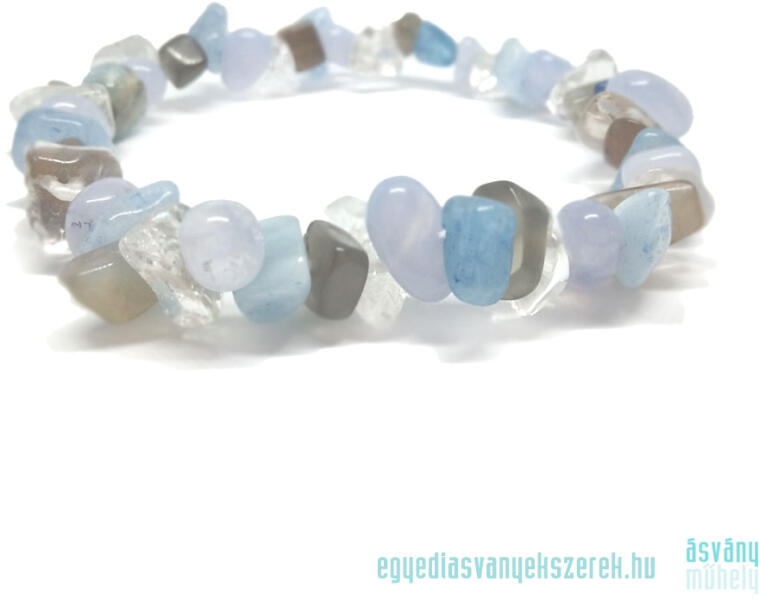 Figyelem! A képen exkluzív kivitelű, rugalmas karkötő látható kapocs nélkül, de kérheted extra erős acélsodronyra is delfinkapoccsal és 5 cm hosszabbítólánccal. Ha a kapcsos verziót kéred, ami nem szakad, nem nyúlik, válaszd ki a listából, vagy írd be a Megjegyzésbe, és a csuklód körbemért méretét is add meg. A féldrágakő ásvány ékszer tartozékai: – 8 mm-es f