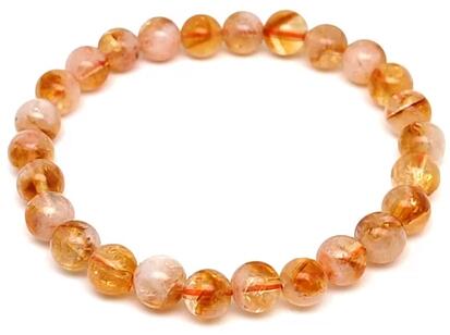 A citrin golyók gumira vannak felfűzve. Amit a citrinről érdemes tudnod: A citrin a sárgának szinte mindenféle színárnyalatát felvonultathatja. Az ásvány akkor keletkezik, amikor a kcvarot enyhe radioaktív sugárzás éri. Ritka kőről lévén szó, az értéke magas, gyakran árulnak hevített ametisztet citrin néven. Lelki gyógyhatása: A citrin védelmezi és megtisztítja aurá