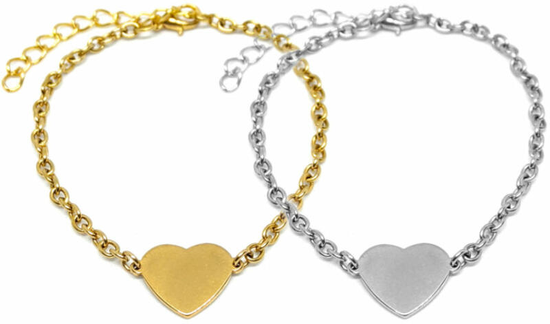 Nemesac l Szív charmos karkötő. Paraméte rek: Charm mérete 1,8x1,3 cm. Anyaga nemesacél, karkötők anyaga rozsdamentes acél. Karkötők mérete 17+5 cm. (Ha ettől eltérő méretet szeretnél, rendeléskor a MEGJEGYZÉSBE írd be. )
