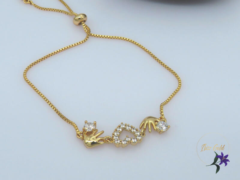 Antiallergén karlánc kis szívvel és kezecskével díszítve Szin: 18K Méret: 22cm -es csuklóig jó, állítható A forgalmazott divatékszerek alapanyaga nikkel és ólommentes ezért többnyire nem okoznak allergiás tüneteket, nyugodtan hordhatják fémérzékeny emberek is. Általában nem színezik a bőrt és más divatékszerekhez képest nagyságrendekkel jobb kopásállósággal ren